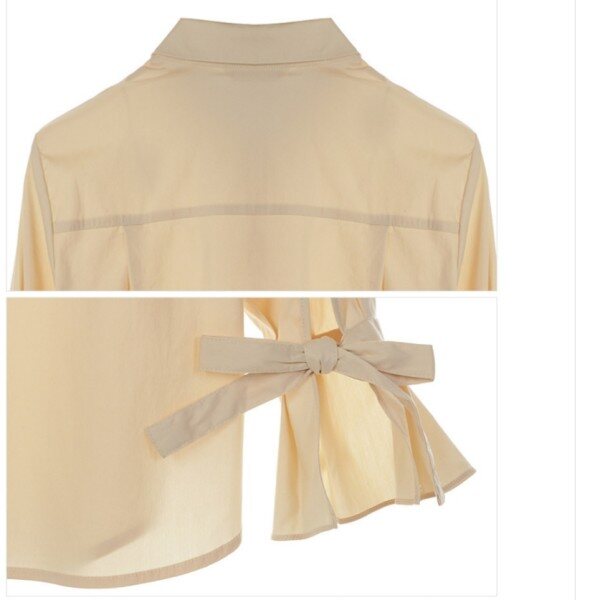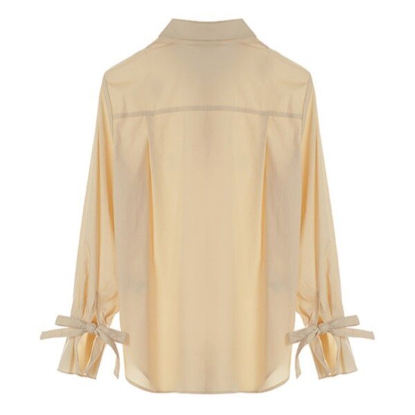 플리츠 주름의 리본 타이 커프스가 베이직한 디자인에 포인트가 되는 셔츠 입니다