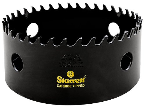 Starrett CT418 Steel High Performance Triple Chip Tungsten Carbide Tipped Hole Saw, Carbide Teeth, 4-1/8" Diameter, 1-5/8" Cutting Depth, 5/8"-18 Thread, Black