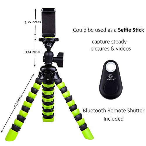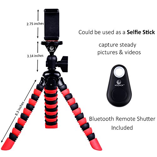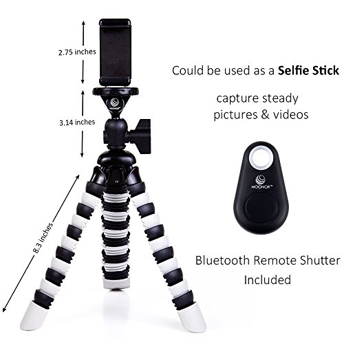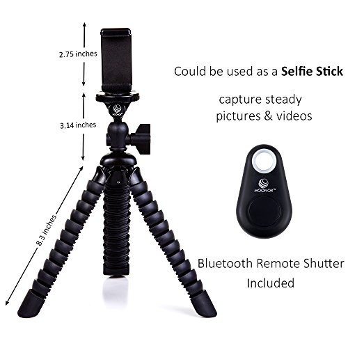 Moonor Handy-Stativ, flexibles Mini tragbares Stativ mit einstellbaren Kamerastander mit Bluetooth-Fernbedienung und Halterung fur iPhone, Android Handy, Kamera, Sport Kamera GoPro