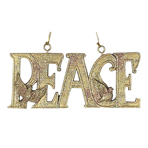 Peace With Flying Doves Gold Glitter 2 x 4.5 Resin Stone Christmas Ornament