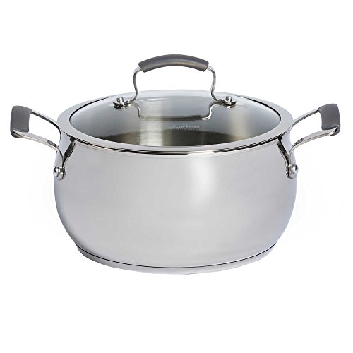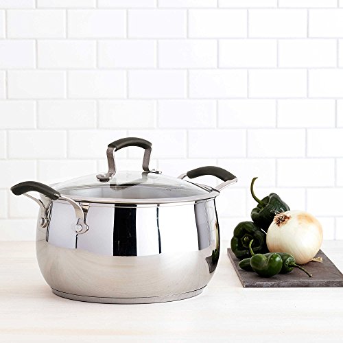 Studio : Tabletops Unlimited, Inc. Publisher : Tabletops Unlimited, Inc. Product Description Our Epicurious Stainless Steel 6 Quart Covered Chili Pot allows brings elegant refined design to your most robust, recipe winning chili. The Stainless Steel construction provides timeless durability. A Tempered glass lid has a stainless steel rim and allows you to monitor cooking without losing moisture or flavor. Silicone handles are double riveted for durability and stay cool to the touch. 18/0 stainless steel base is suitable for use on induction, gas, ceramic top and electric ranges. Oven safe to 350°F. Includes:?26-cm. stainless steel pasta insert with two handles, 10-quart stock pot with lid. Limited lifetime manufacturer's warranty. Imported. 0