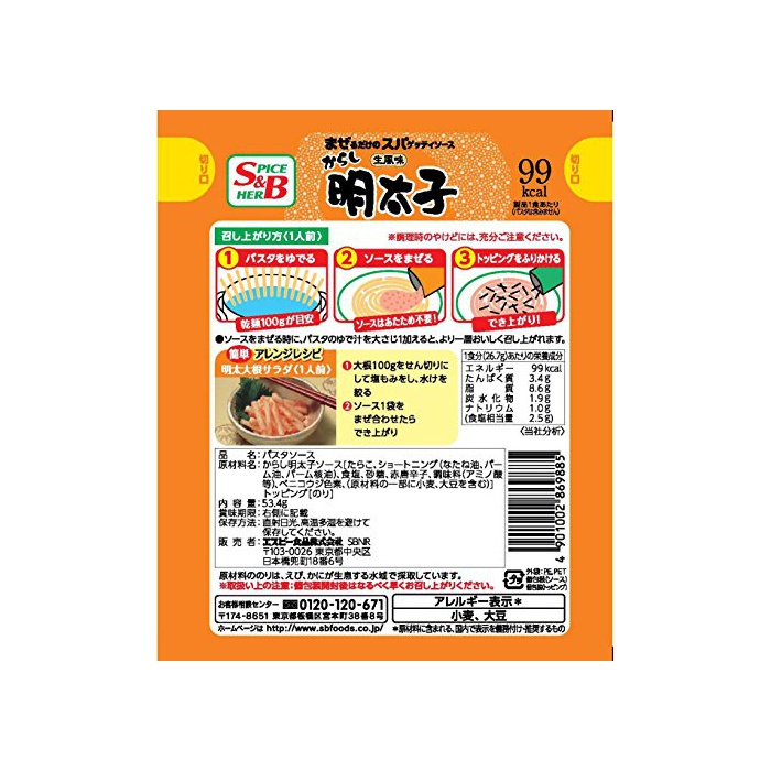 원본상품명: S&B 生風味スパゲッティソス からし明太子 53.4g