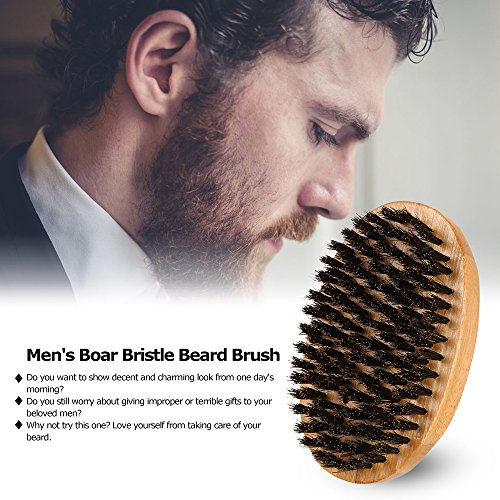 Anself Men's Boar Bristle Beard Brush Mustache Brush Bamboo Military Round