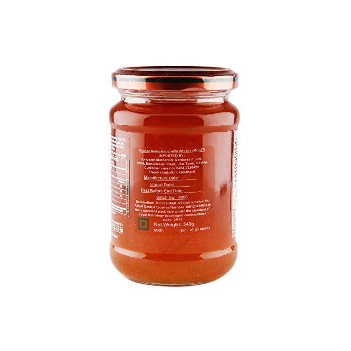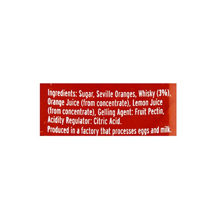 원재료:설탕,오렌지,농축 과즙( 오렌지,레몬)고, 위스키,겔화 제(백 친:사과 유래)고, pH 조정 제