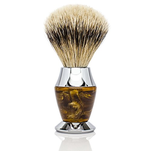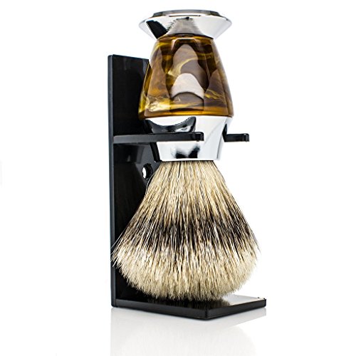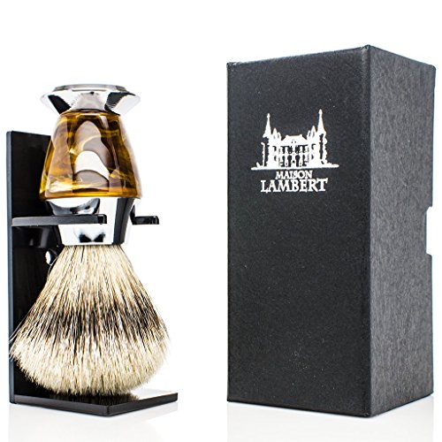 Maison Lambert 100% Silvertip Badger Bristle Faux Horn Handle Shaving Brush - Brush Stand Included - FREE US SHIPPING - Perfect gift for wet shavers for christmas, birthday or fathers day!
