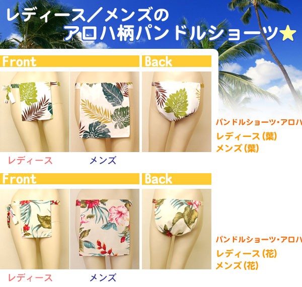 | <h1>締めつけ感なし!一度着けるとやみつきになる解放的なパンドルショーツに明るいアロハ柄登場☆レディース、メンズがあるからカップルでおそろいもOK!着け方は簡単でストレスフリーなふんどしをお試しあれ♪</h1> |