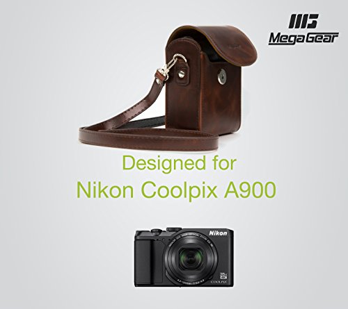 MegaGear Protective Leather Camera Case, Bag for Nikon COOLPIX A900 (Dark Brown)