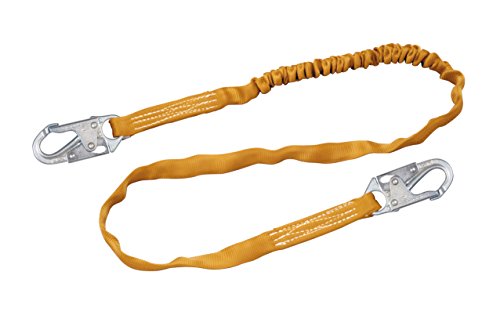 -. Feature : Titan shock-absorbing lanyards / Pack-type shock-absorbing lanyards include the shock absorber pack as an integral part of a standard lanyard / Built-in woven inner core which smoothly expands to reduce fall arrest forces / It has two locking snap and rebar hooks with single leg / The pack expands to reduce fall arrest forces while a back-up safety strap deploys for added fall protection