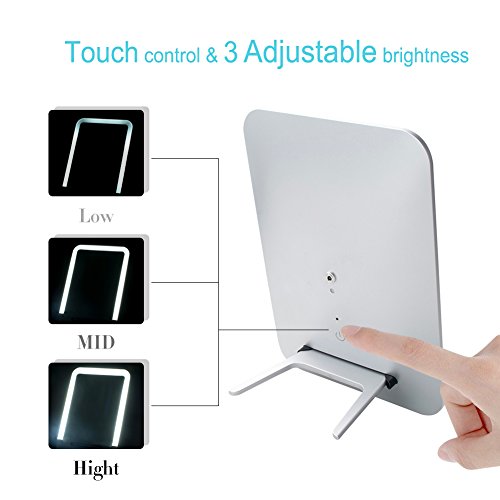 Modern Touch Pad Mirror: Touch control switch on the back and with 3-gear (LOW/MID/HIGH) dimming function.