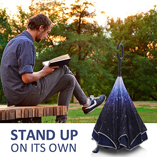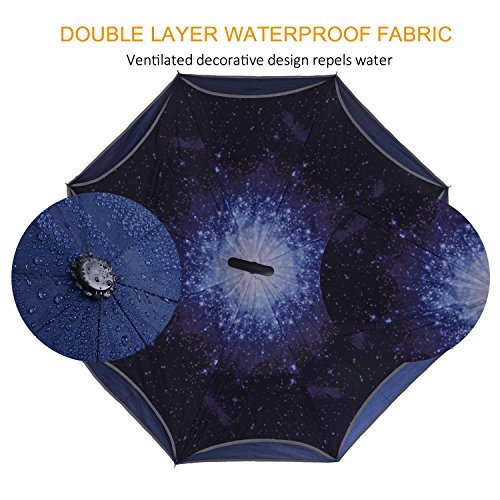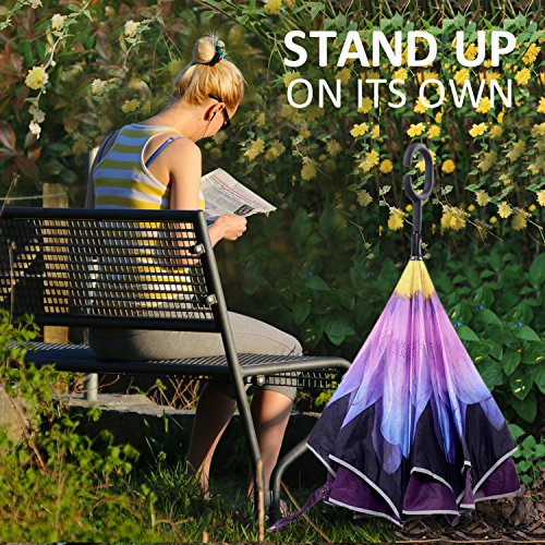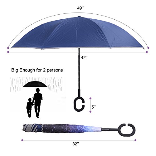 -. Title : Inverted Umbrella with Light Reflection Strip, Double Layer Car Reverse Umbrella,Travel Ease Auto-open Self-Standing Umbrella with C-shape Handle Plus Carrying Bag for Free Hands