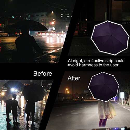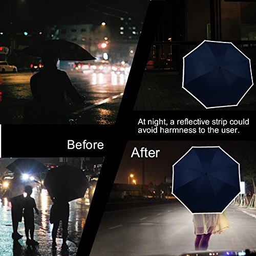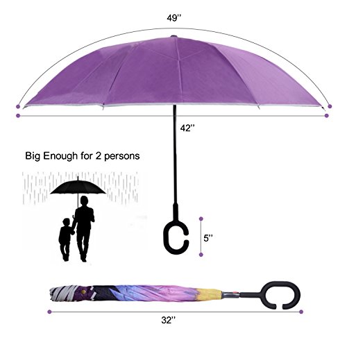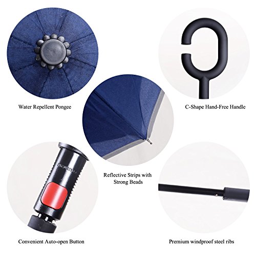 -. Feature : ✔ HANDS-FREE C-SHAPE HANDLE: Travel Ease C-Shape Handle Umbrella allows you to hold its handle with wrist while you need to send your cell phone messages, lifting a bag, walking the dog, watching your favorite sports, taking a baby by the arm on rainy days. / ✔ AUTO-OPEN CAR UMBRELLA: Travel Ease Inverted Car Umbrella has been designed with the unique Auto-Open button. Unlike many other Manual-open umbrellas in the market, you just press a button and watch the umbrella open. No more manual handling or getting wet when get off car on rainy days. / ✔ DOUBLE LAYER INVERTED UMBRELLA: Travel Ease Innovative inverted design will keep the wet fabric inside without wetting your pants, seats and floors while you close your umbrella. Additionally, Double-layer fabric design could effectively avoid rainy water permeation which happens to most of single-layer fabric umbrellas. And it is specially fit for your driving on rainy days. / ✔ SELF-STANDING AND REFLECTIVE STRIPES: The inverted umbrella designed to stand on its own without leaning and leaving wet on the wall. The reflective stripes on the edge of umbrella enhance your visibility to alert other cars under inadequate lighting outside on rainy days. / ✔ DURABLE CONSTRUCTION TO LAST: The frame is composed of a solid black metal shaft and premium steel ribs. The canopy is made from premium and breathable 210T pongee fabric which totally prevents leakage and dries quickly.