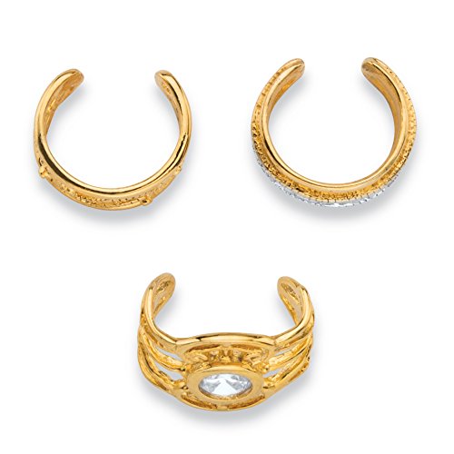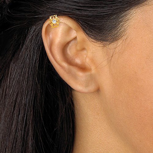 No piercing required with these trendy ear cuffs! Choose a clean row design or pretty scrolls, you have three options to mix and match your look with fashion-forward style and cubic zirconia sparkle. Crafted in 18k gold over sterling silver, this three-piece set has .28 carat T.W. of cz shine. Cuffs are typically worn on the helix of the ear for maximum impact. - 57688Feature