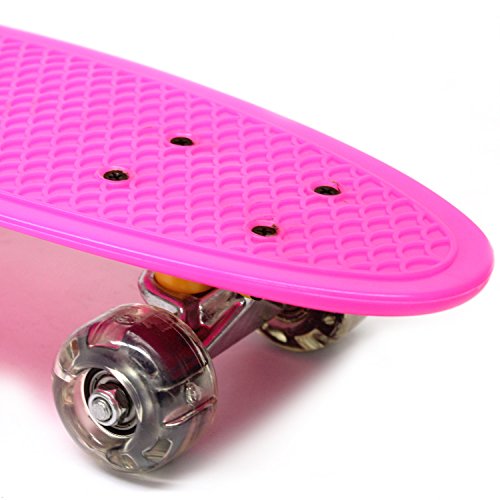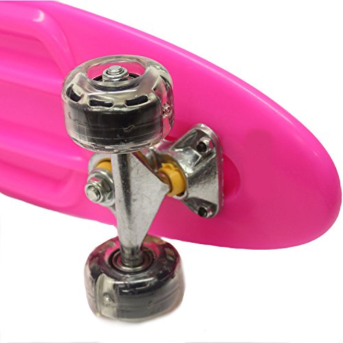 - Title : Plastic Skateboard LED Light Up Wheels Penny Retro 22" Mini Street Cruiser - High Strength Skate Sun Board Deck Vintage Surf, Ultra Durable & ABEC-7 Bearings (Pink), 100% Money Back Guaranteed
