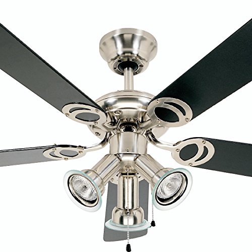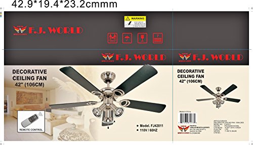 FJ WORLD L42011 absolutely stunning black ceiling fan with a polished nickel body, 5 blades 42" long , 3 lights and free remote
