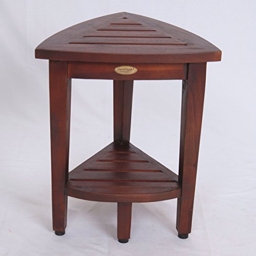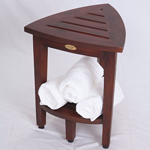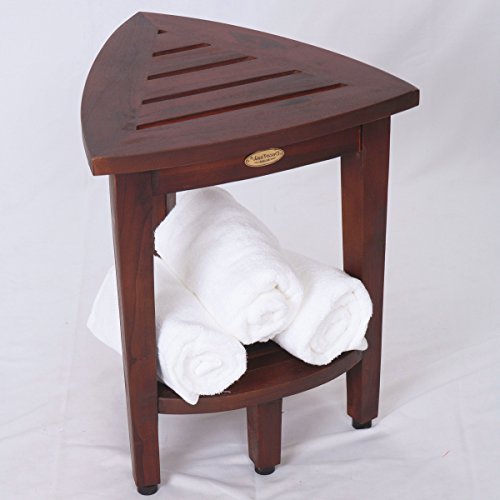 New- Oasis FULLY ASSEMBLED Teak Corner Shower Bench With Shelf- Shower Sitting, Storage, Saving Foot Rest