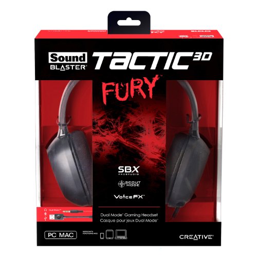 Experience superior audio with the Sound Blaster Tactic3D Fury, a high quality gaming headset that includes SBX Pro Studio advanced audio technologies that deliver powerful cinematic audio. Armed with the Dual Mode USB adapter and a dedicated software suite, gamers can experience amazing positional surround sound pumped through powerful 40mm drivers, along with Scout Mode1, a feature that allows users to hear enemies from further away for a distinct tactical advantage. The software also provides the freedom of full audio customization and custom profile creation. The headset includes a detachable noise cancelling microphone and a 3.5mm jack for use with smart devices - making this Dual Mode headset perfect for mobile communications as well!