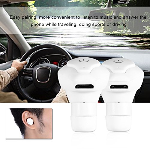 -. Feature : Mini In-Ear design, invisible and compact, easy and comfortable to wear. / Easy pairing, more convenient to listen to music and answer the phone while traveling, doing sports or driving. / Noise cancellation and stereo audio output ensure the clear and loud sound. / 80 hours long time standby, work long for 2-3 hours. / Compatible with most phones, tablets, and other smart devices with Bluetooth.