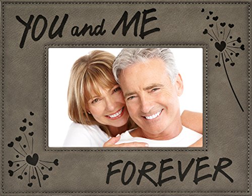 - UNIQUE CUSTOM ENGRAVED FRAME: This 4 x 6 Inch Faux Leather Picture Frame has an Inspirational message that reads "YOU and ME FOREVER" is Gray in color and engraves in Black. Ideal for sharing a special moment or memory. Our Faux Leather Picture Frame is perfect to celebrate Valentine's Day, or just because you love him or her