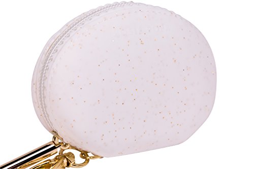 -. Feature : Made of 100% silicone - anti-bacterial, easy to clean and non-pourous / Large size holds up to 4 pacifiers / Gold zipper with adorable scalloped edge detail / Gold clasp easily attaches anywhere and everywhere / White silicone with gold glitter