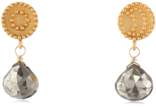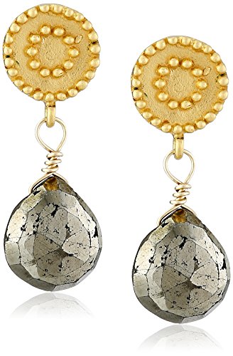 Drop earrings featuring drop cracked pyrite suspended from gold-tone circle at post