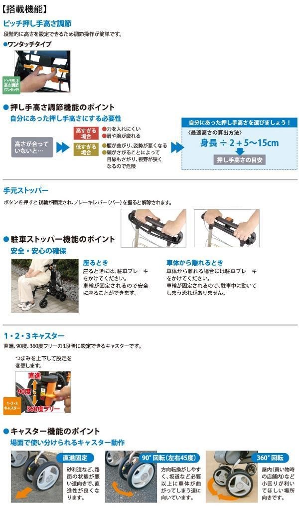 | 狭い道での歩行や、車への持ち込みに便利なコンパクトタイプ!! |