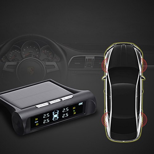 FociPow Solar Energy TPMS Tire Pressure Monitor System Adjustable LCD Display with USB Charger