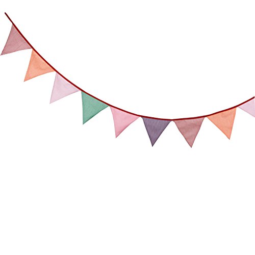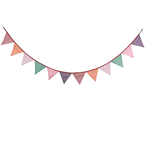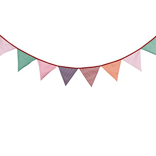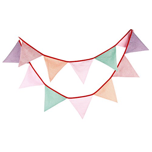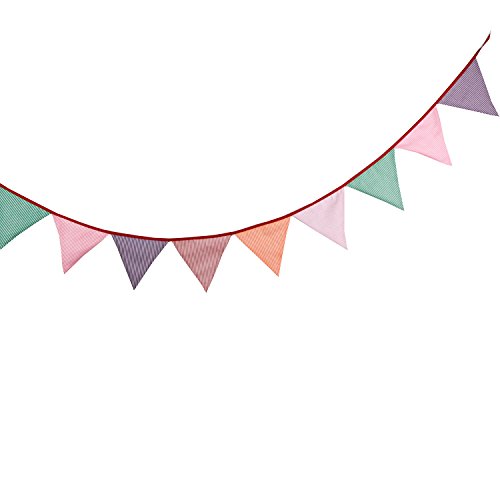-. Feature : 12 Double Layer Fabric Flag Bunting / 6 different patterns / Length: Approx 3.2 Meters / 10.5 feet / Flag Size: approx 6.3"(16cm) in side length and 5.91"(15cm) in height / Used in Wedding, Birthday Party, Baby Show