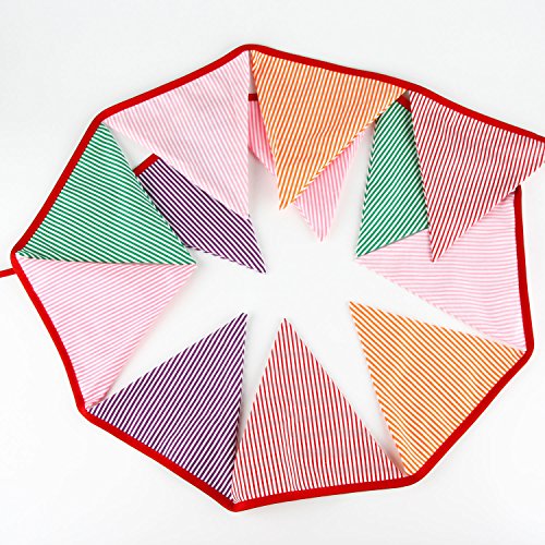 -. Title : Multicolored Striped Vintage Fabric Flag Buntings Garlands Wedding Birthday Party Decoration