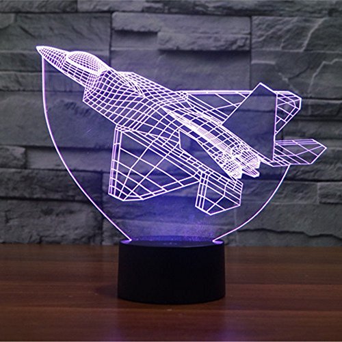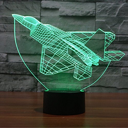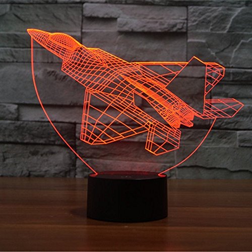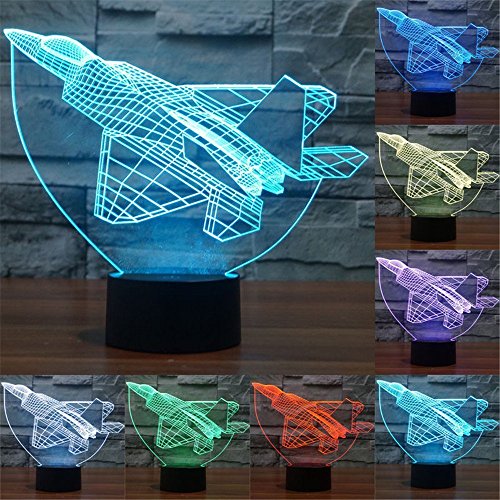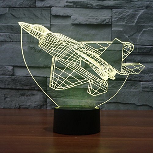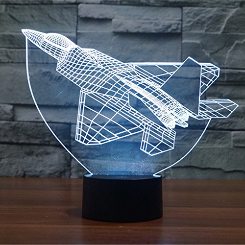 3D Illusion LED Fighter Night Light,7 Colors Gradual Changing Touch Switch Battleship Table Lamp for Holiday Gifts or Home Decorations (Airplane Fighter)