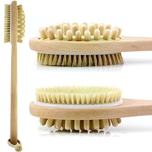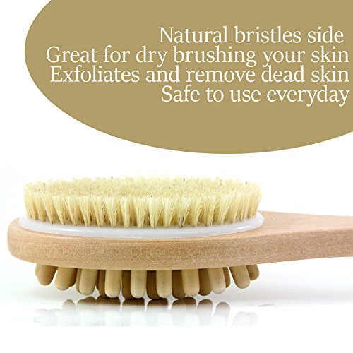 EFFECTIVE TWO HEAD BRUSHES with natural bristles which is great for wet or dry brushing and the massaging nub is excellent to use for treating cellulite.