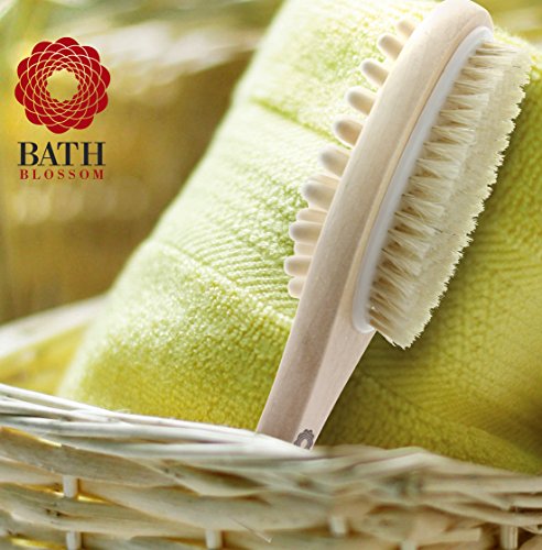 Bath Blossom Natural Bristle Bath Body Brush - Exfoliating Scrub Brush - Effective for Wet and Dry Body Brushing - Long Handled Shower Back Scrubber...