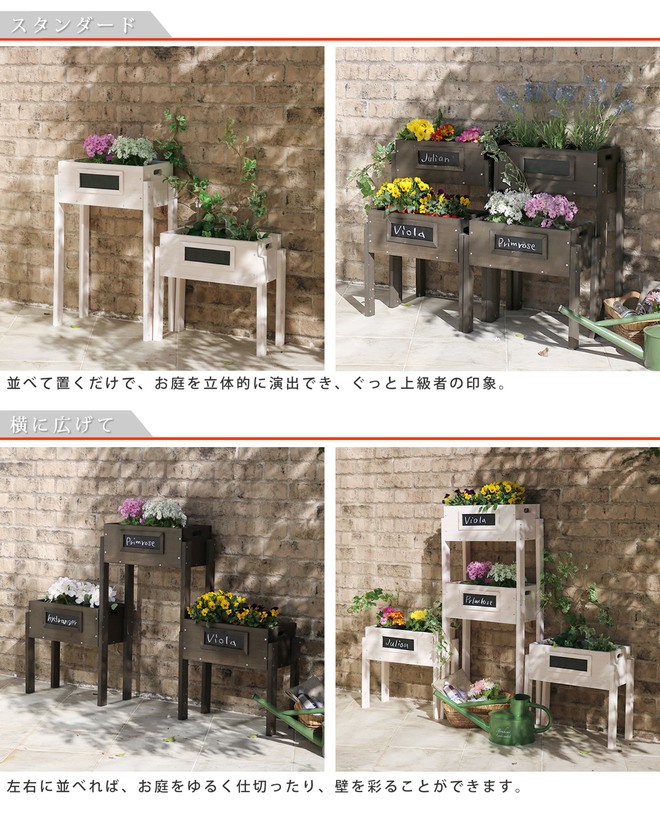 ●ハイタイプは2段、ロータイプは3段まで積むことができるプランターです