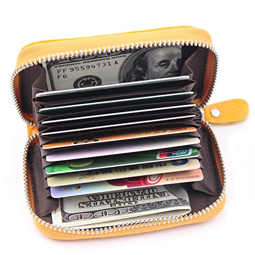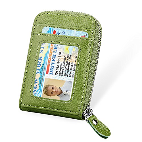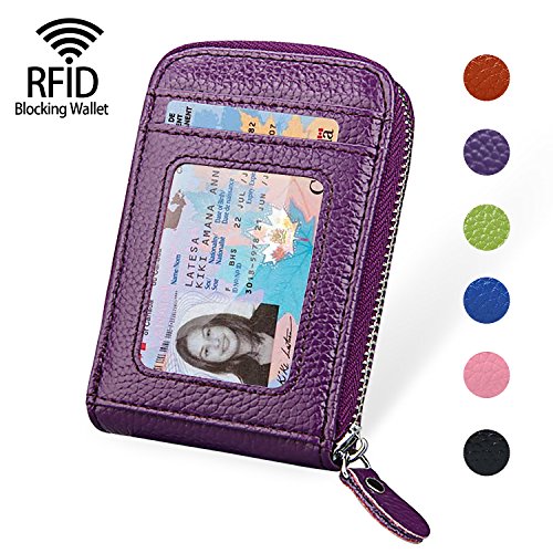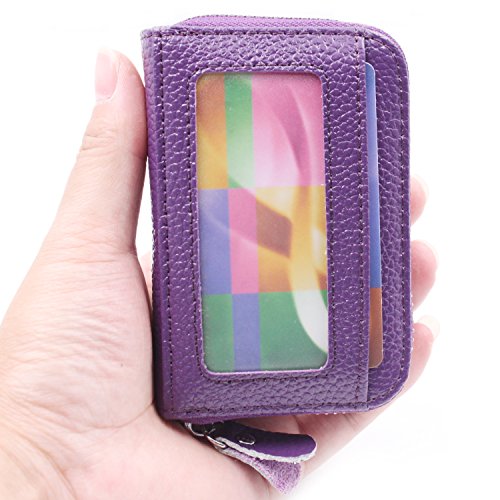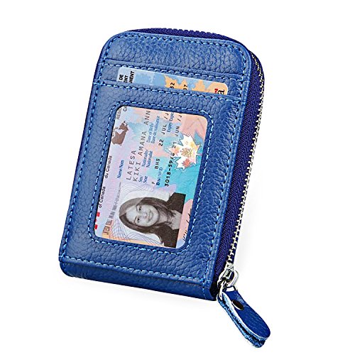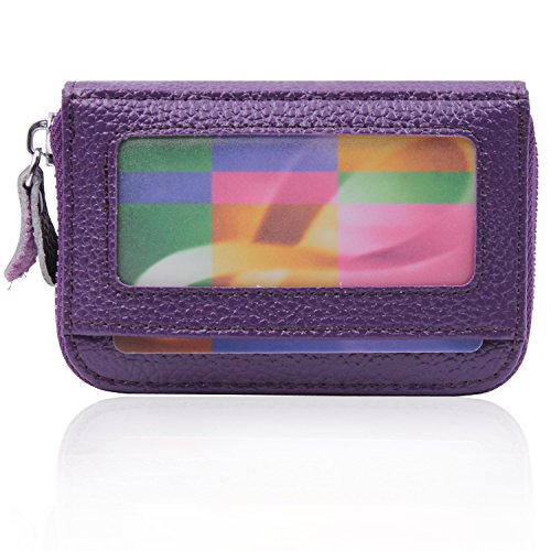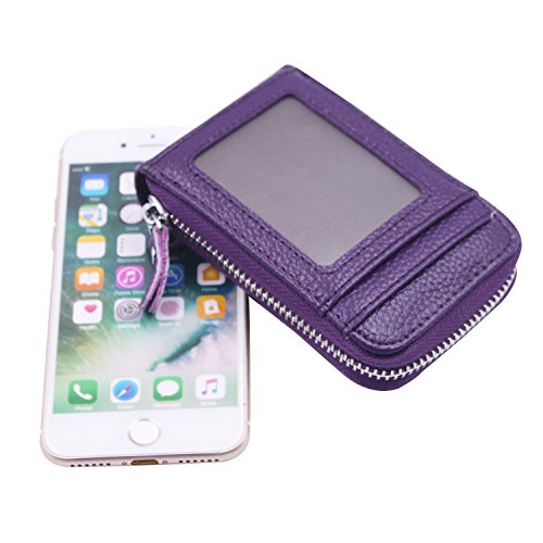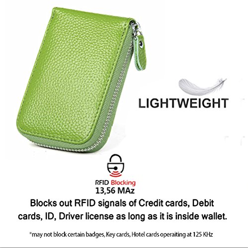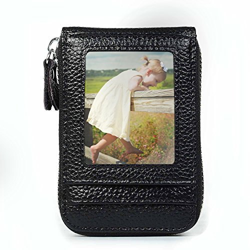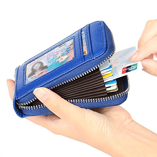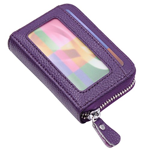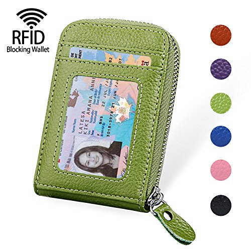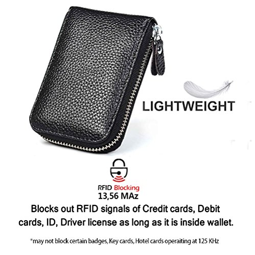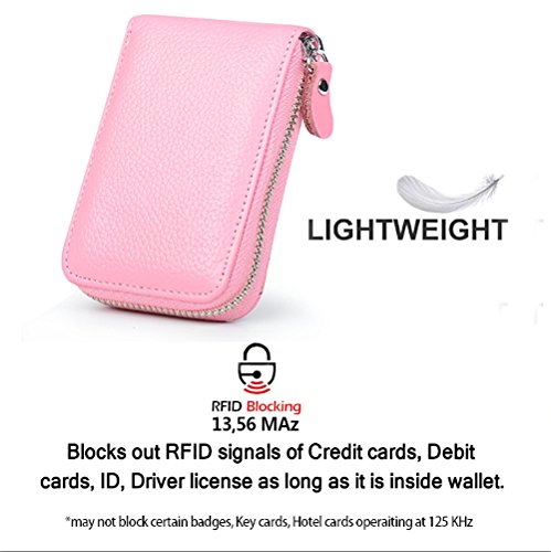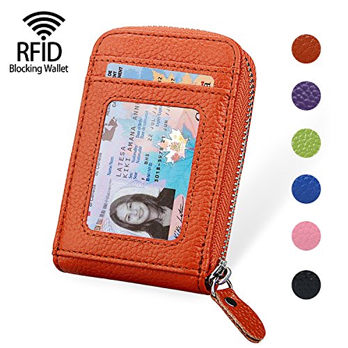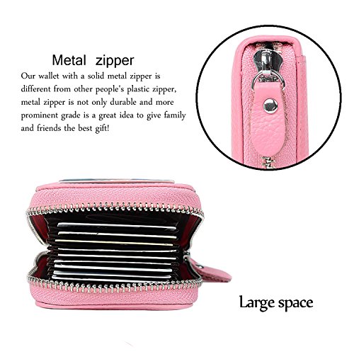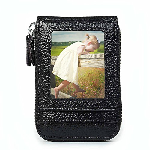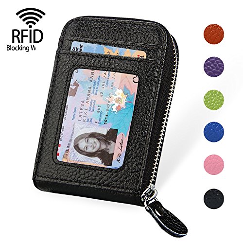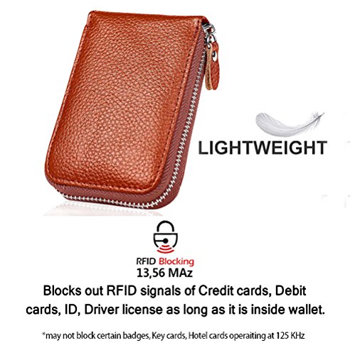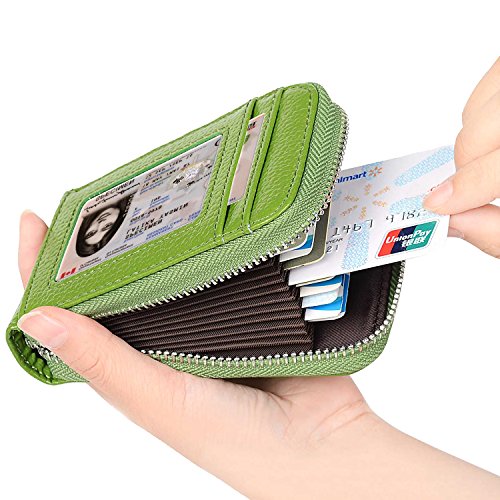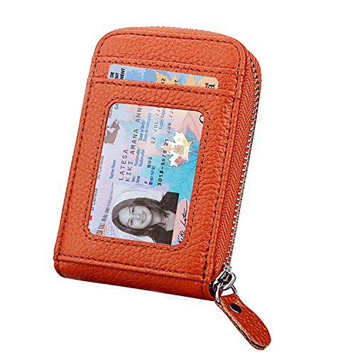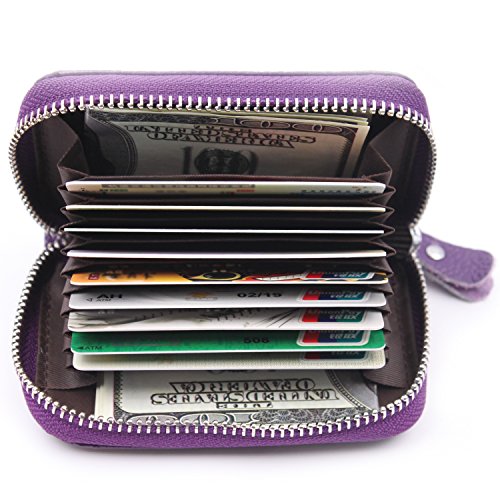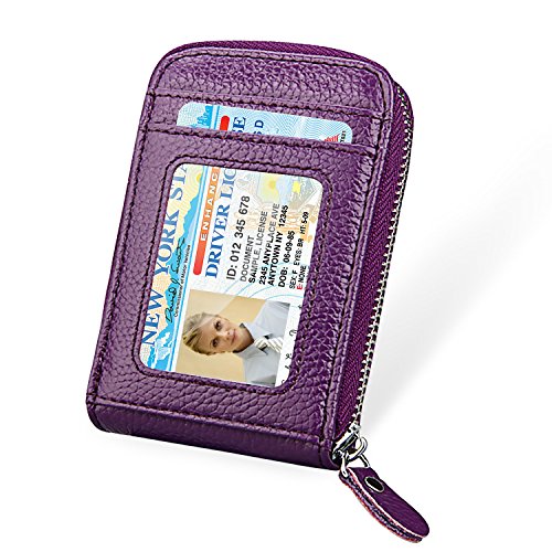 | RFID Blocking Genuine Leather Zip Around Accordion Credit Card Holder Wallet with ID Card Window |