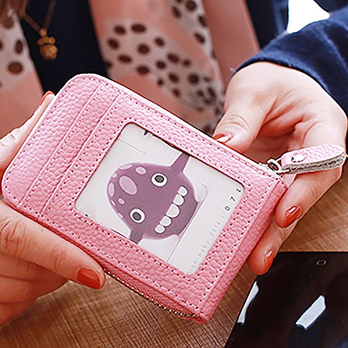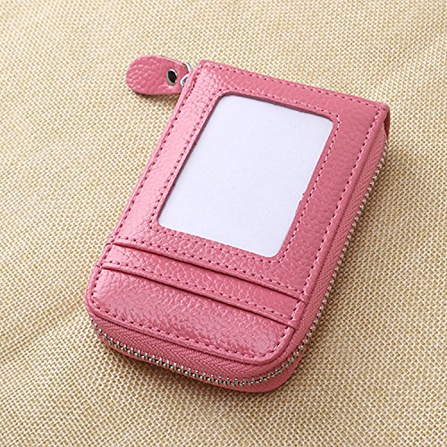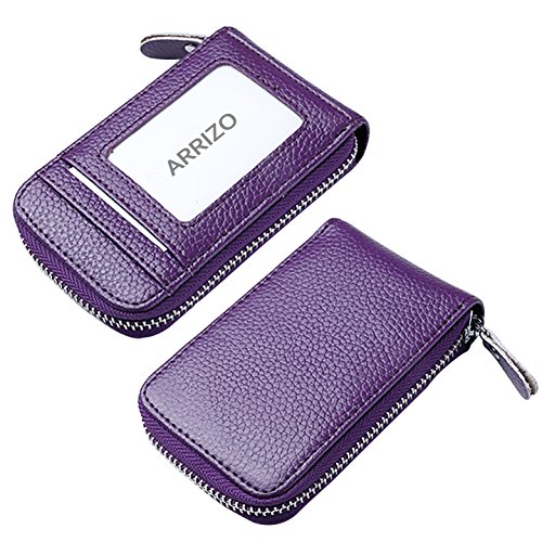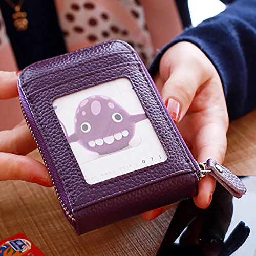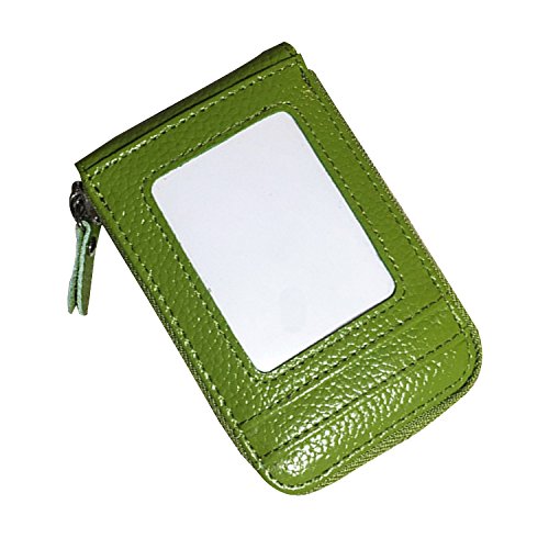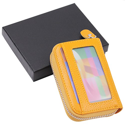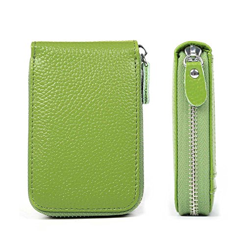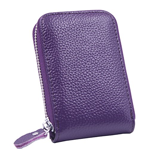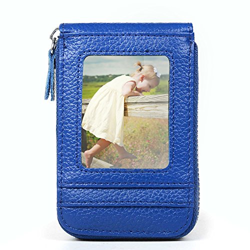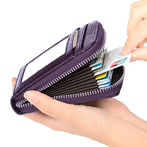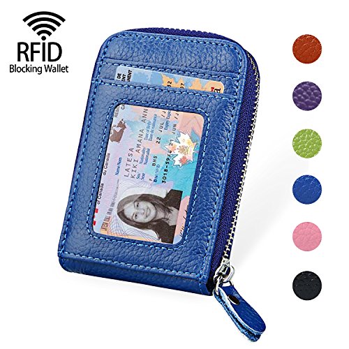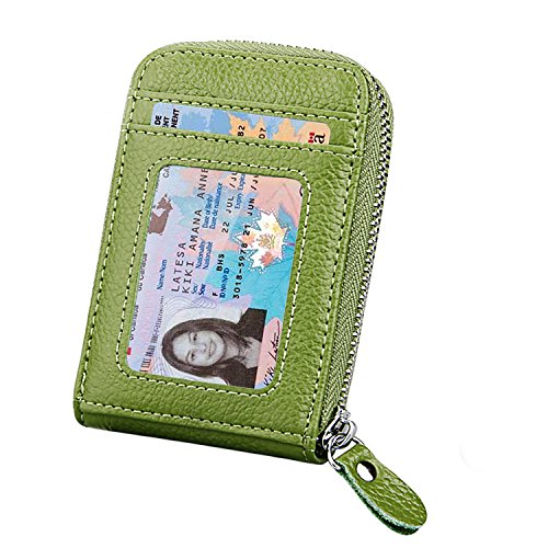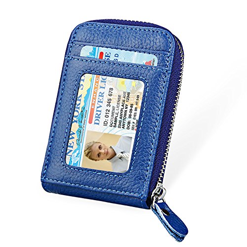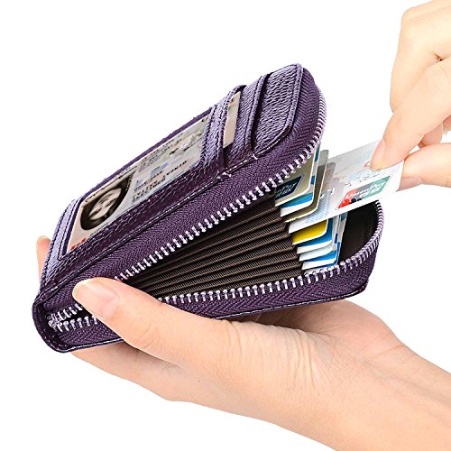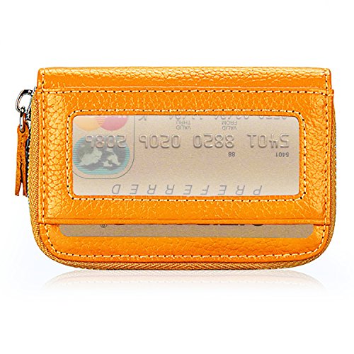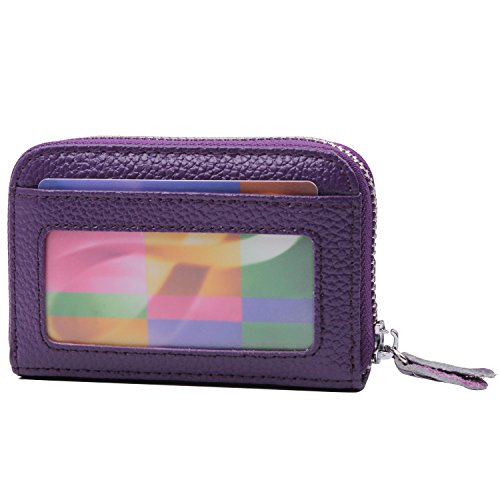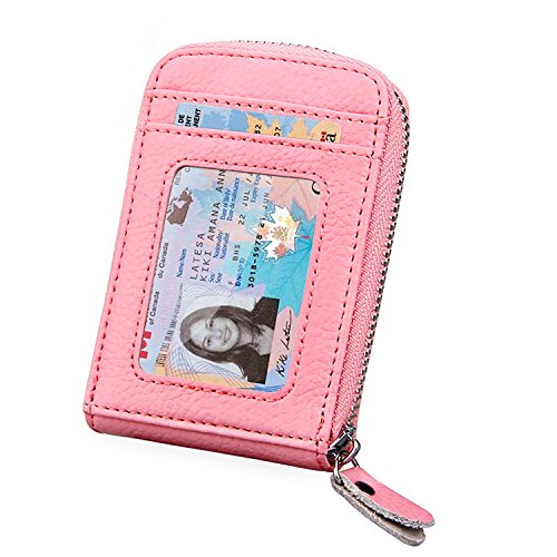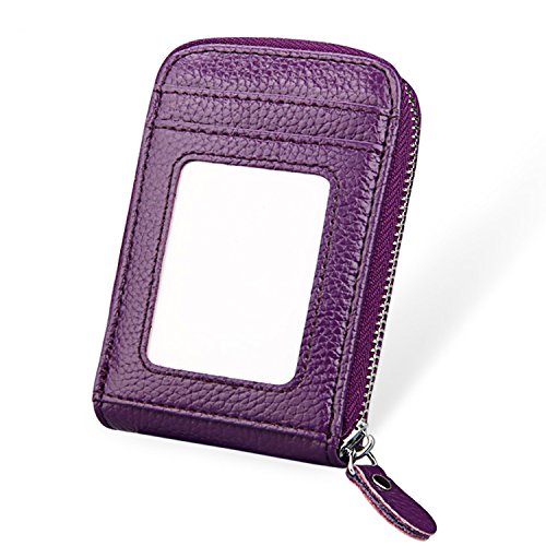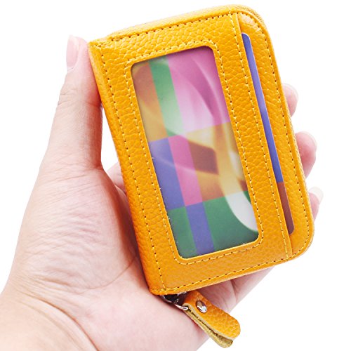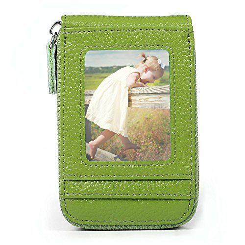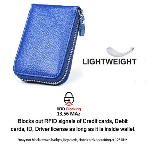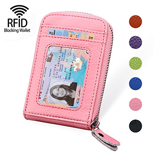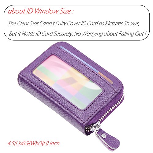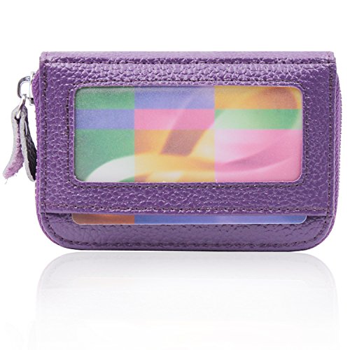 | RFID Blocking Genuine Leather Zip Around Accordion Credit Card Holder Wallet with ID Card Window |