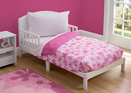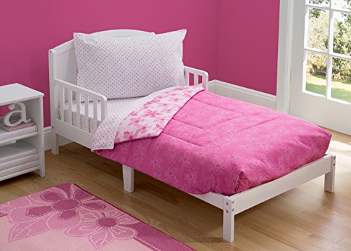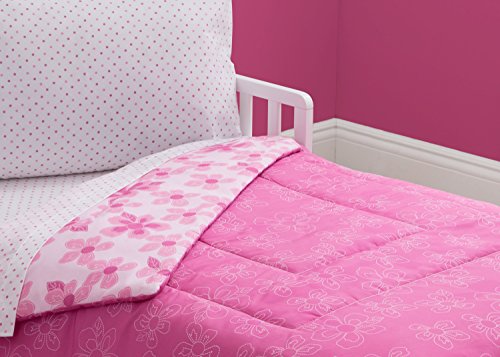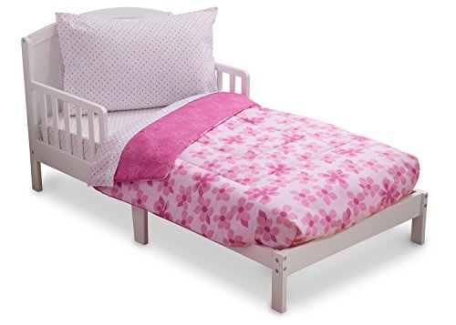 -. Title : Delta Children Reversible Girls Toddler 4 Piece Bedding Set (Fitted Sheet, Flat Fitted Top Sheet, Fitted Comforter, Pillowcase), Girls’