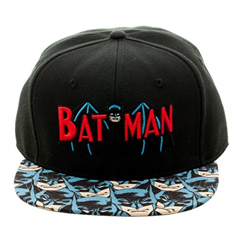 Product DescriptionDC Comics Batman Sublimated Flat Bill Snapback. Hat design features Retro Batman Face Sublimated or Collage Print Bill.0