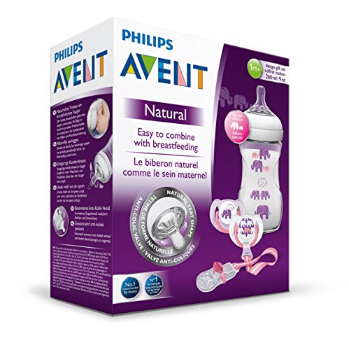 -. Title : Philips AVENT Elefanten Geschenk - Naturnah Flasche, 2 Beruhigungssauger, Schnullerkette
