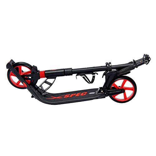 -. Title : Xspec 923 Folding Adult Kick Street Scooter w/ Full Suspension & Rear Wheel Braking System, Supports 220 lbs, City Urban Commuter Street Push Scooter, Aluminum Frame Matte Black and Red
