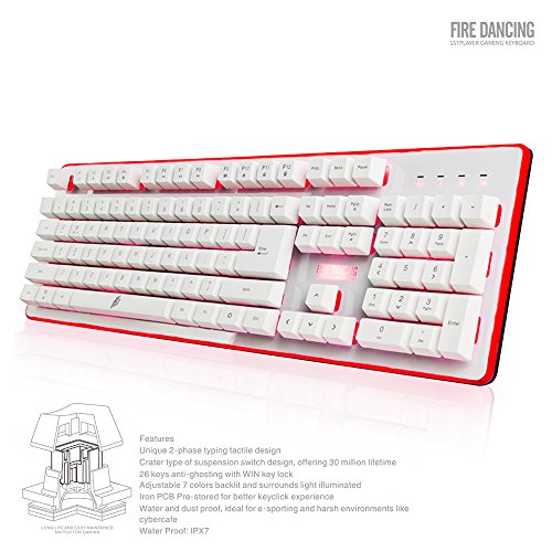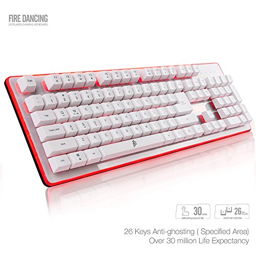 104 standard keys, 26 keys without conflict, splash-proof, interchangeable "WASD" keys and "Arrow" keys, WIN keys can be disabled for better control and gaming experience