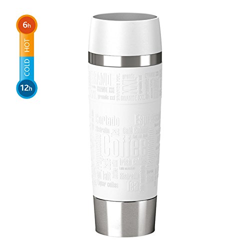 If you are looking for a high quality, clever engineered, and truly great vacuum mug, look no more! This German Engineered Emsa Travel Mug keeps your drinks hot for a minimum of 6 hours and even longer for cold drinks at 12 hours. Most popular Vacuum Mug on Amazon Germany with over 5000 reviews and awarded with a solid 5 Star rating. The mug opens with a press of a button, the patented mechanism is super easy to use, and seals 100%. You can drink from all sides, so no more reason to rotate the mug to find the opening. The mechanism is easy to take apart and all components are dishwasher safe. The Emsa Travel Mug is the sole winner and the only vacuum mug rated as “Excellent” by the German consumer Öko-Test magazine devoted to consumer protection and ecology. It also beat out its competitors in various comparisons tests. The core of the mug is made out of high quality 18/10 stainless steel and the sleeve out of food graded silicon. With a capacity of 500 milliliters or 0.53 quarts, it is the perfect size for your Grande Latte at your favorite coffee shop. REDUCE, REUSE, REFILL – Reduce your environmental impact on the way to work, at the next meeting or while shopping – the tradition of enjoying a coffee from a paper cup on the go is more popular than ever. However, the average lifetime of a paper coffee cup and its plastic lid is only 15 minutes! This quick coffee fix leaves a bitter aftertaste when it comes to the environment; the short useful life of disposable cups means mass production on a huge scale, and this in turn harms the environment big time. Produced by EMSA, an innovative German producer with nearly 70 years of history in producing quality goods. For EMSA, sustainability is one of their core values as demonstrated in their entire value chain – starting with the use of quality raw materials, and the deployment of energy-efficient production facilities, to the very strictest quality controlsFeature