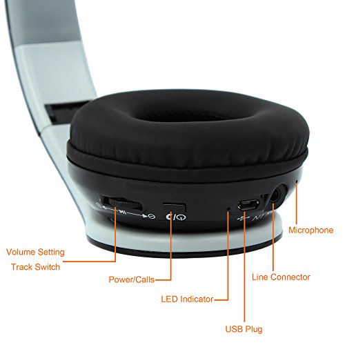 Feature : High definition Bluetooth stereo headphones for smartphone provide extremely exact and natural sound rather than traditional stereo. / Over ear wireless headphones with soft noise isolation pads: the closed protein ear cushion blocks noise in almost environment for better guaranteed comfort. Total ear coverage may vary with each individual. / Detachable audio cable with in-line control and headphones with mic: allow music playback from various devices with 3.5mm interface such as smart phones, tablets, PC and much more. Make easy your operation. / Foldable design makes it easier to store, transport and care. / Powerful battery supports over 100 hours standby time.