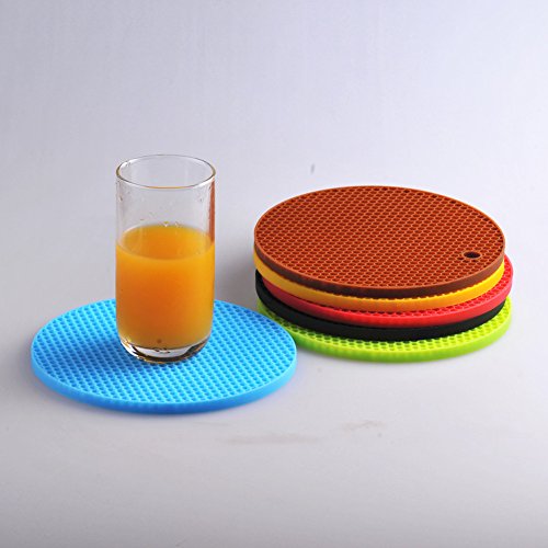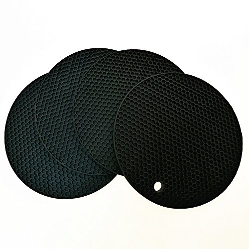 7"X7" Round Silicone Trivets and Hot Pad Mat, Pot Holder,Jar Opener and Spoon Rests, (Set of 4) Non Slip, Flexible, Durable, Dishwasher Safe Heat Resistant Color Black