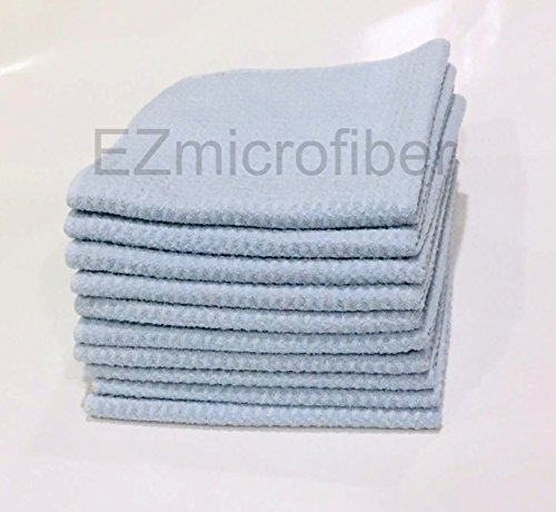 EZmicrofiber 12x12” MICROFIBER KITCHEN hand towel and dish cloth waffle pattern - set of 10 - BLUE