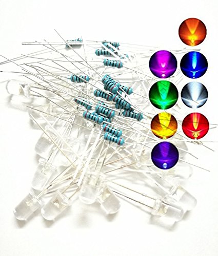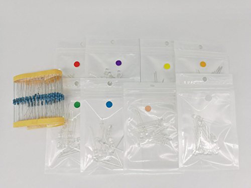 M.best 5mm Assorted Clear LED Light Emitting Diodes Electronic 1/4 W Resistors Pack of 80 (8 Colors )