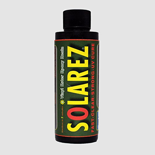 Studio : Wahoo International Inc. Publisher : Wahoo International Inc. Product Description Solarez UV Cure Vinyl Ester Epoxy Resin is an extremely tough, corrosion-resistant resin with great adhesion. It is the base resin in our Solarez extreme putty. Cures by only UV-light but can be ordered to cure by MEKP catalyst too. This is a remarkably clear Vinyl Ester. Cannot be used on styrofoam. 0