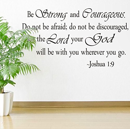 MLM 12.5*22.5 Inch Be Strong and Courageous Do Not Be Afraid Religious Saying Joshua 1:9 Wall Decor Vinyl Lettering Home Decals Quote Home Decoration Décor