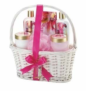 - Includes 210 ml shower gel, 210 ml body lotion, 150 ml body cream, 150 ml body scrub, bath crystals, puff and willow basket.