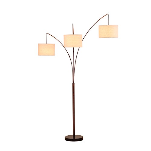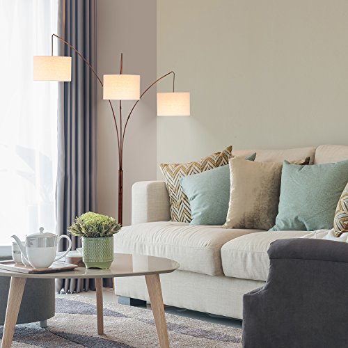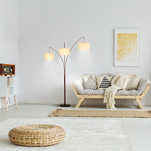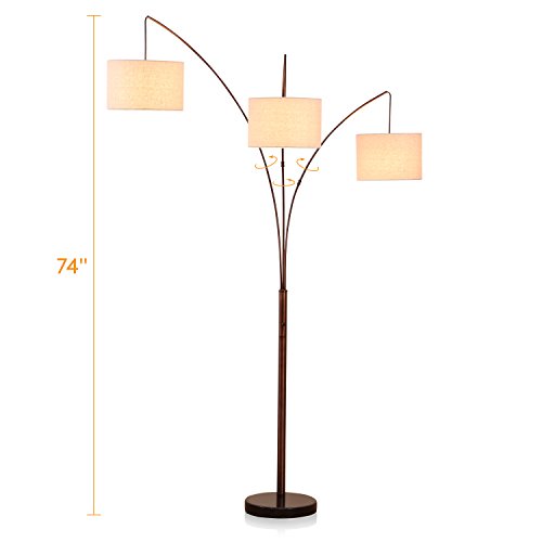 - UNIQUE FLOOR LAMP THAT LOOKS GREAT WITH ANY DÉCOR: This eye-catching floor lamp features 3 hanging lampshades suspended from 3 curved arms at different heights that are connected to a metal body with a sturdy, marble round base. Each metal arm can be moved side to side so that you can reposition the light to where it is needed the most. The three suspended lamp shades create efficient overhead light for a large area. This lamp stands at 74 inches tall and will be a gorgeous addition to any room.