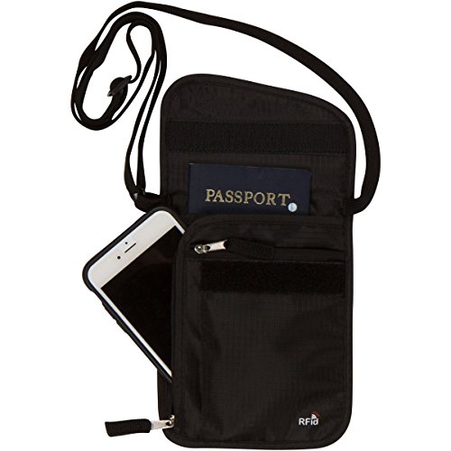 PROTECTS YOUR VALUABLES & IDENTITY - Made of durable and water-resistant nylon, our neck wallet conceals cash, credit cards & other travel documents from pickpockets. RFID Blocking lining protects passports, credit cards, and personal information against identity theft and electronic pickpocketing.