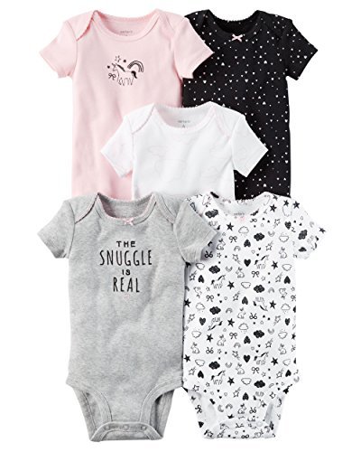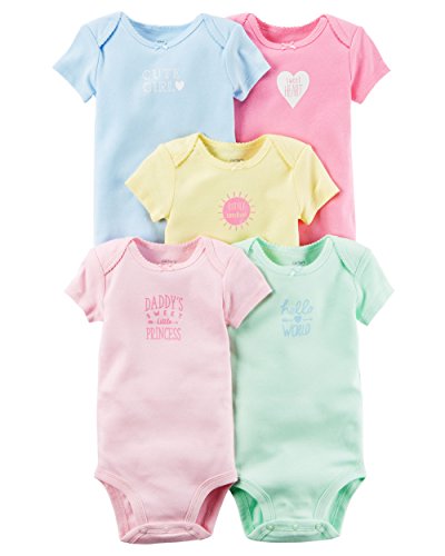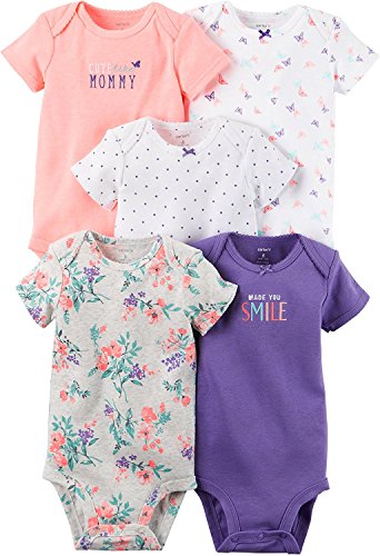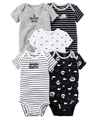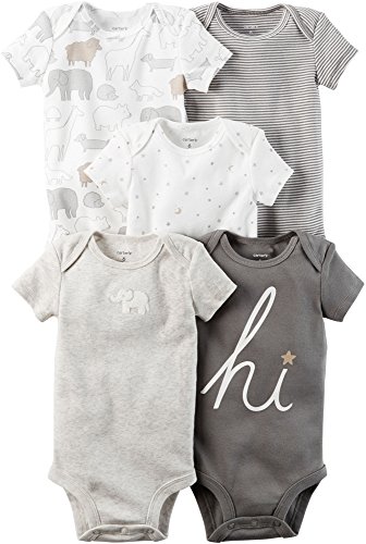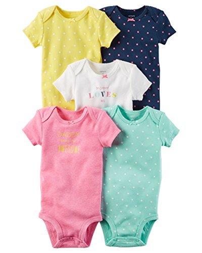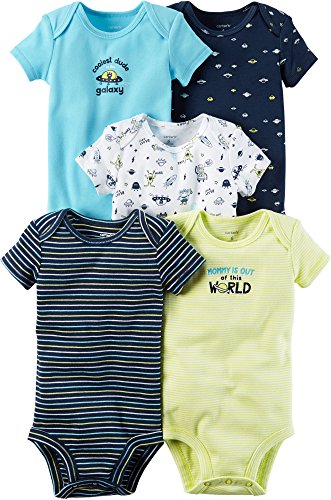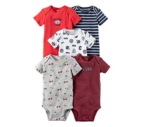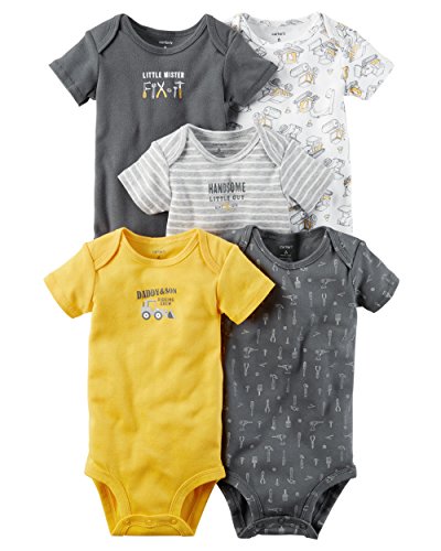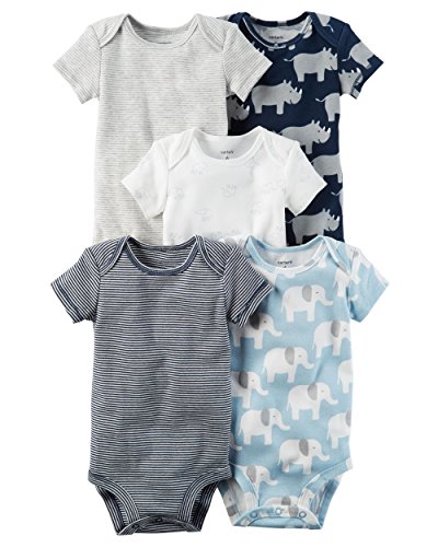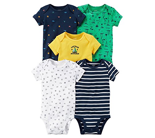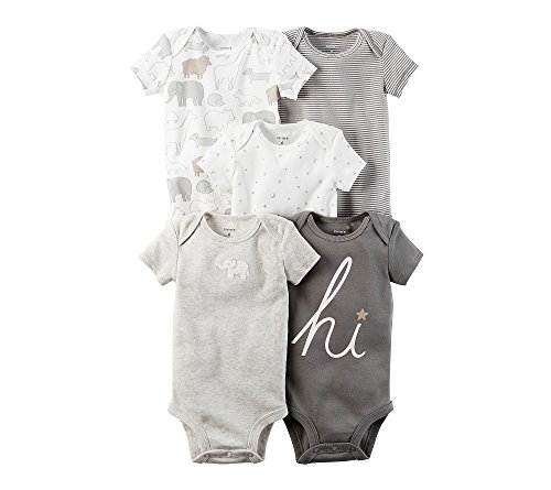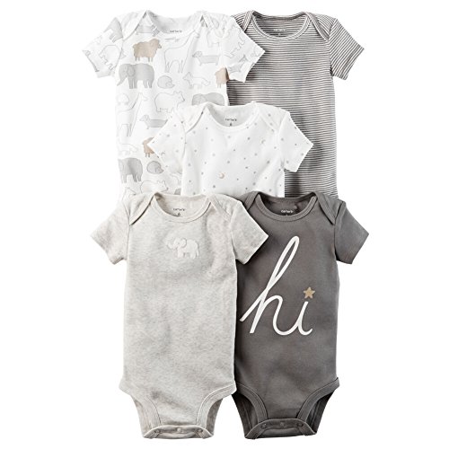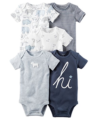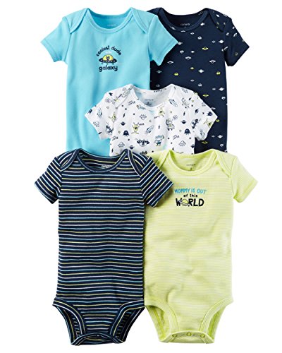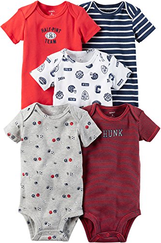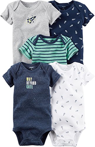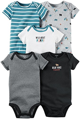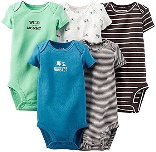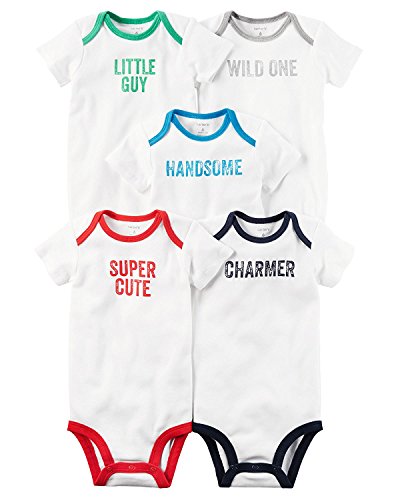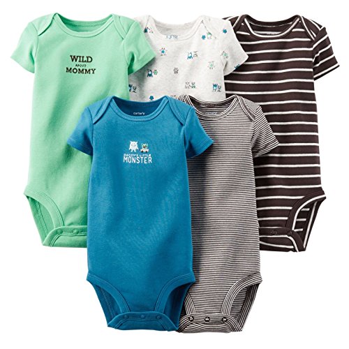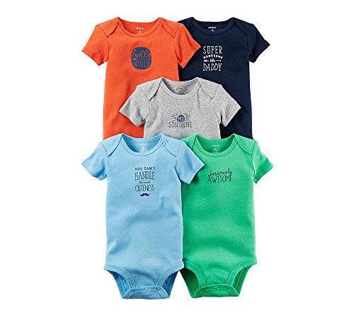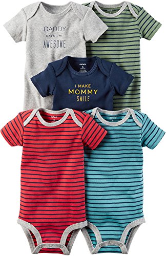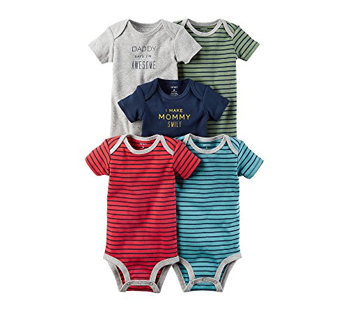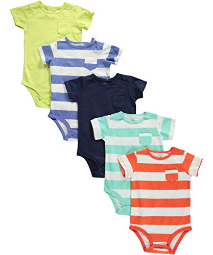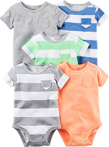 5 Pack Bodysuits (Baby) - Stripes/Solids Pack includes 5 short-sleeve coordinating bodysuits. Nickel-free snaps on reinforced panel last through all those diaper changes. Expandable shoulders slip easily over little ears. Zoom in to see pocket details and bold stripes.Features:Carter's is the leading brand of children's clothing, gifts and accessories in America, selling more than 10 products for every child born in the U.S. Their designs are based on a heritage of quality and innovation that has earned them the trust of generations of families. Machine Wash